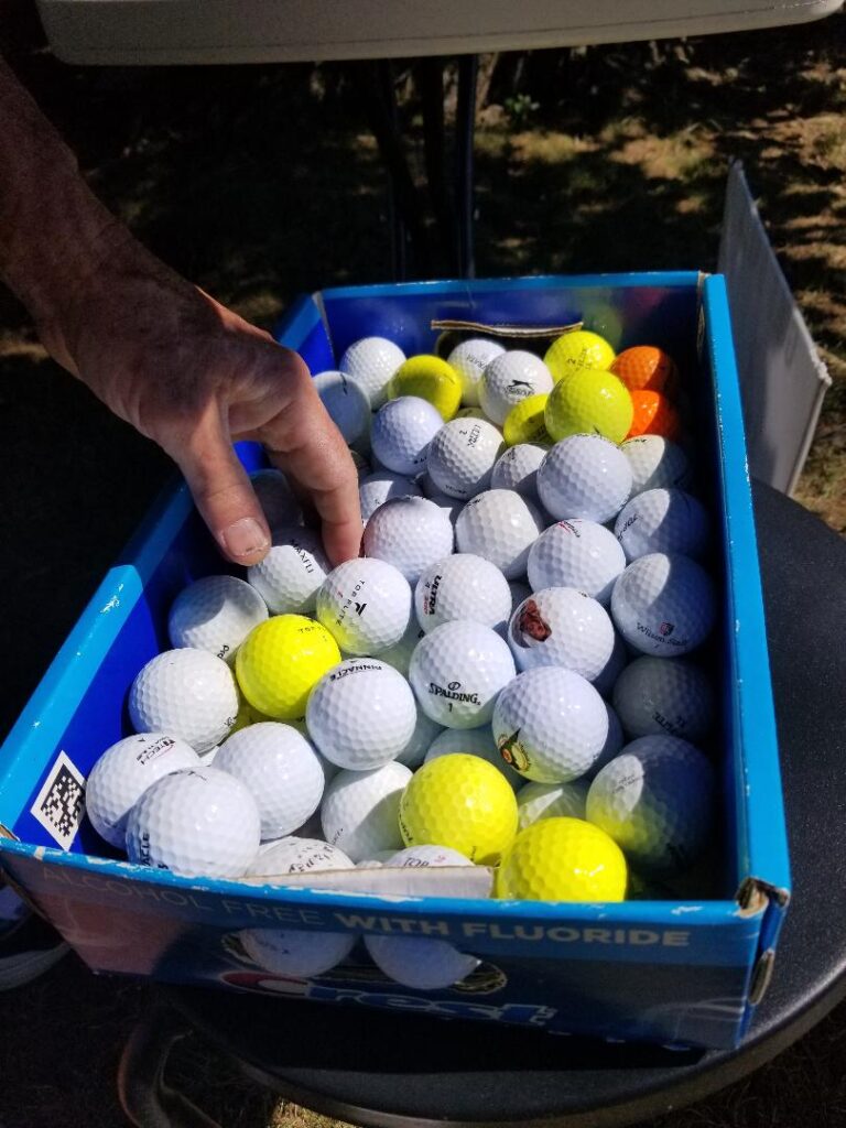 I have another friend, Skip, whom I call a “reluctant” Golf Ball Hunter. He just happens to have the perfect golf ball finder: a large swimming pool, surrounded by an even larger privacy fence, just off a fairway. If they go over the fence, very few balls are rescued. And if they land in the pool? Forget about it—they now belong to Skip. (You can even see ball-shaped holes in his fence!) Skip separates the balls by brand and type and places them in clear plastic bags. When he sees me laboring past his house on a muggy afternoon, he’ll oftentimes bring them over to let me look through as he hands out ice cold water and beer to our foursome.